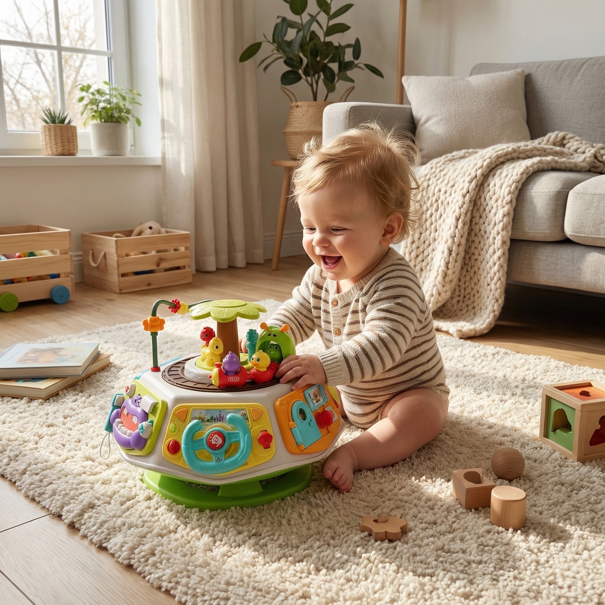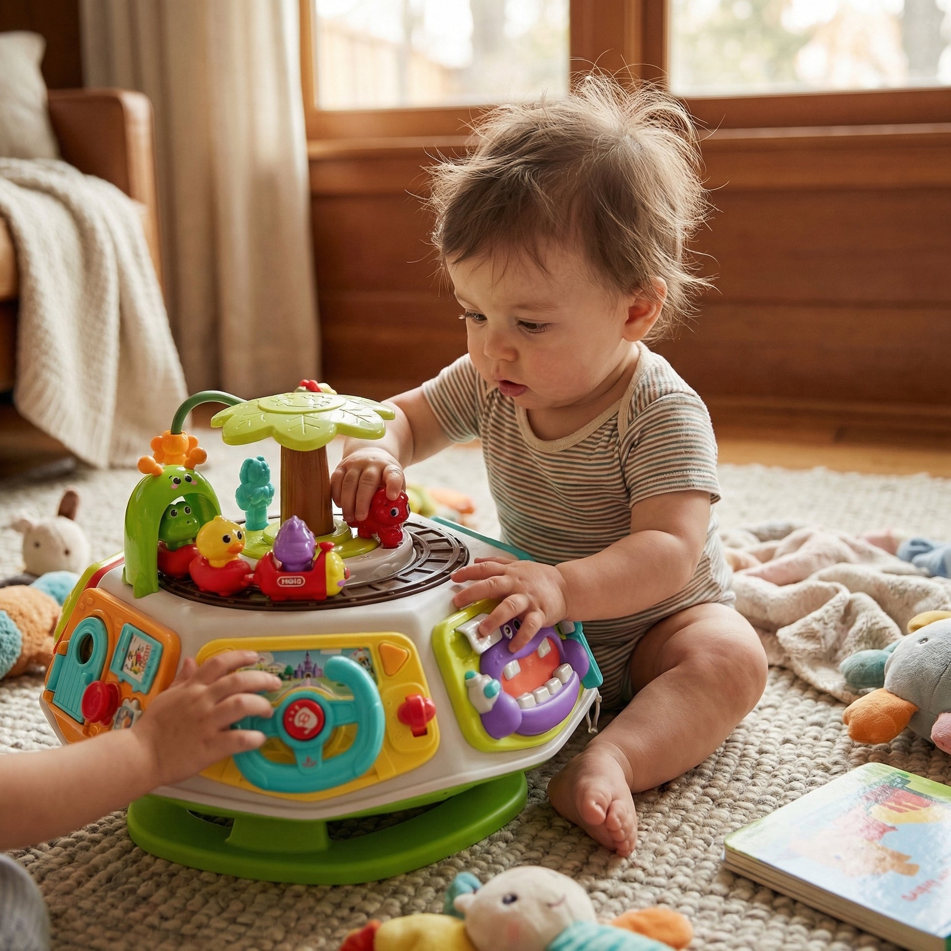 Dit interactieve speelcentrum helpt je baby om op een natuurlijke en speelse manier de wereld te ontdekken. Elk onderdeel is ontworpen om nieuwsgierigheid te prikkelen en vaardigheden te ontwikkelen.